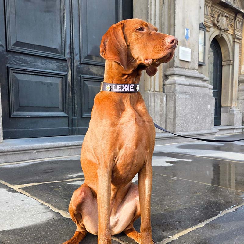 Every Squffy piece is made to reflect your dog’s unique personality. Choose from multiple embroidery fonts and thread colours to make their name truly theirs, or style their collar with themed enamel pins that match their mood, the season, or your adventures together. Whether you prefer something timeless, playful, or bold, every detail is yours to design.