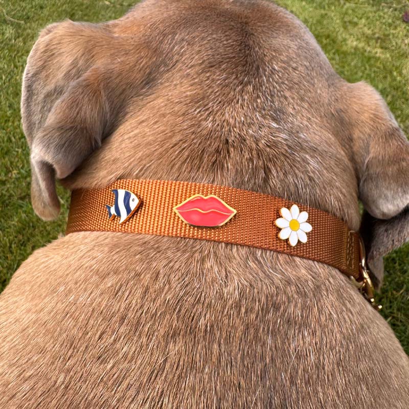 ¿Listo para diseñar el collar perfecto de tu perro? Elige su talla, añade el bordado y selecciona tus pines favoritos. Haz clic en el botón de abajo para empezar.