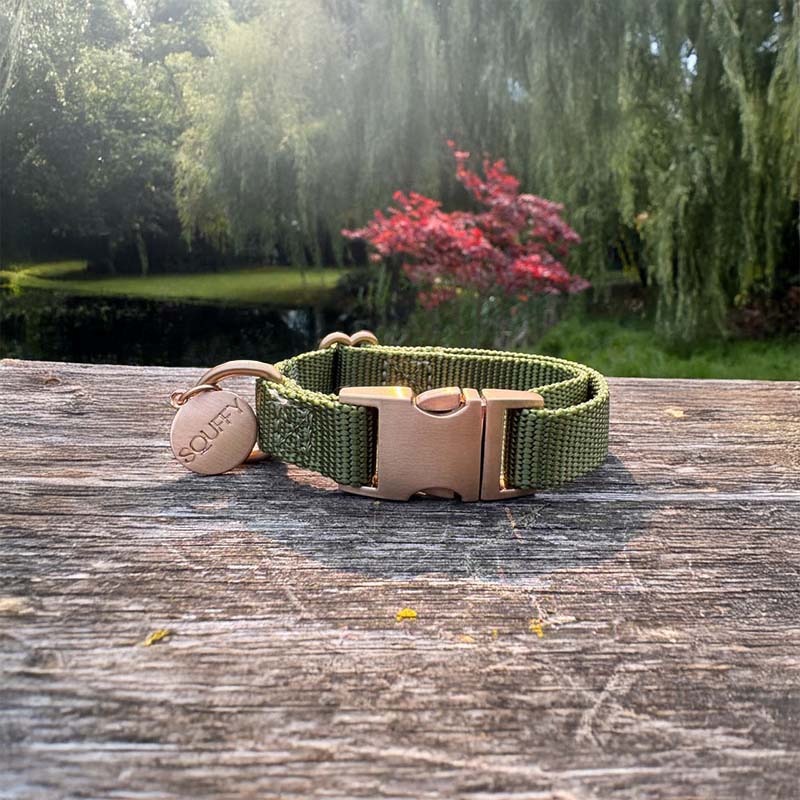 Suave, ligera y hecha para sus primeras aventuras. Esta correa clásica es perfecta para cachorros: fabricada en nailon duradero que es suave al tacto y fácil de manejar durante los paseos. Su textura lisa y el elegante color verde salvia combinan a la perfección con los herrajes dorados para un look atemporal.